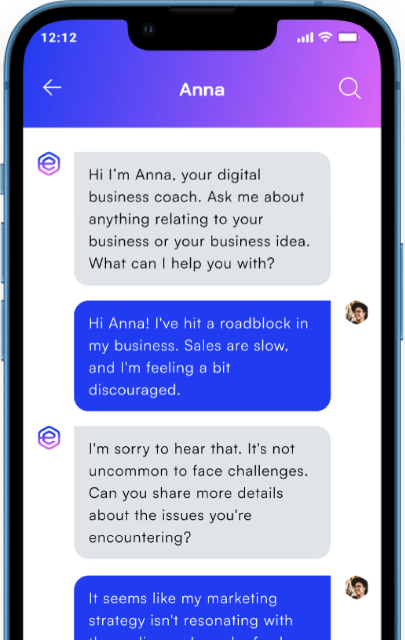 Use Anna to effortlessly receive personalised entrepreneurship guidance and advice through simple, text-based conversations, whether you're looking for high-level insights on scaling your business or detailed tips on optimising your website for conversions.